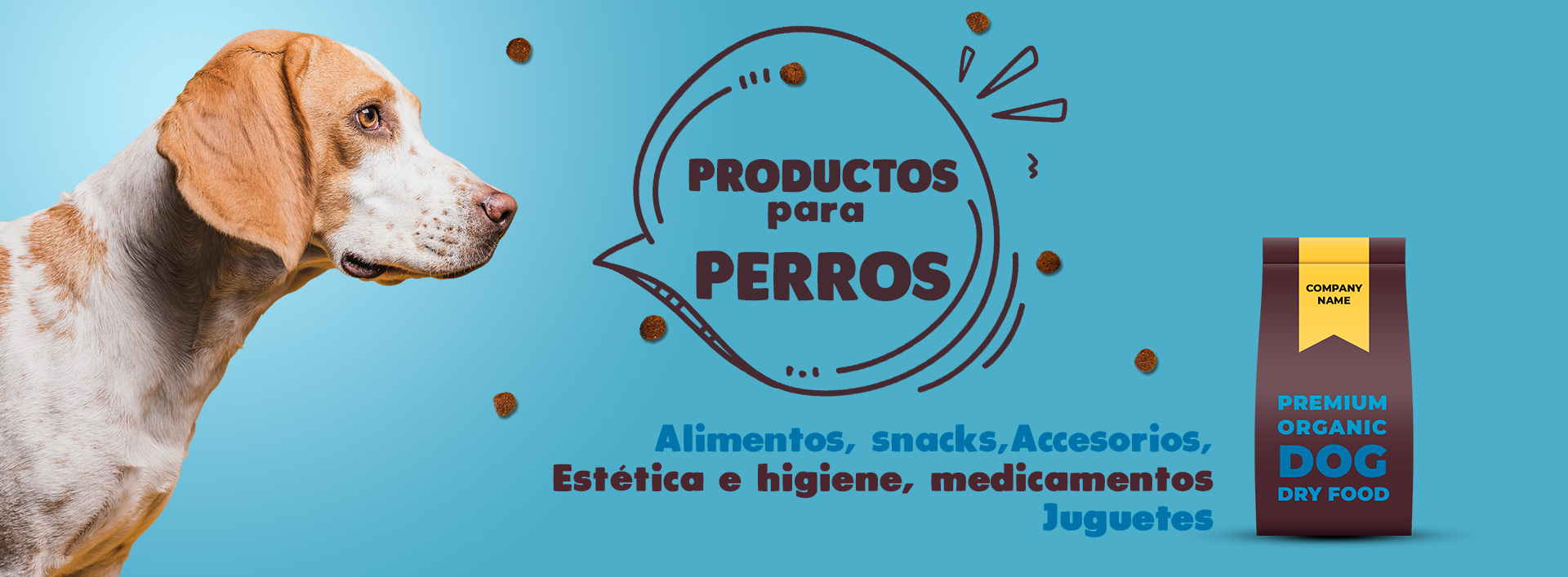Alimentos, snacks, accesorios, estética e higiene, medicamentos, juguetes.
